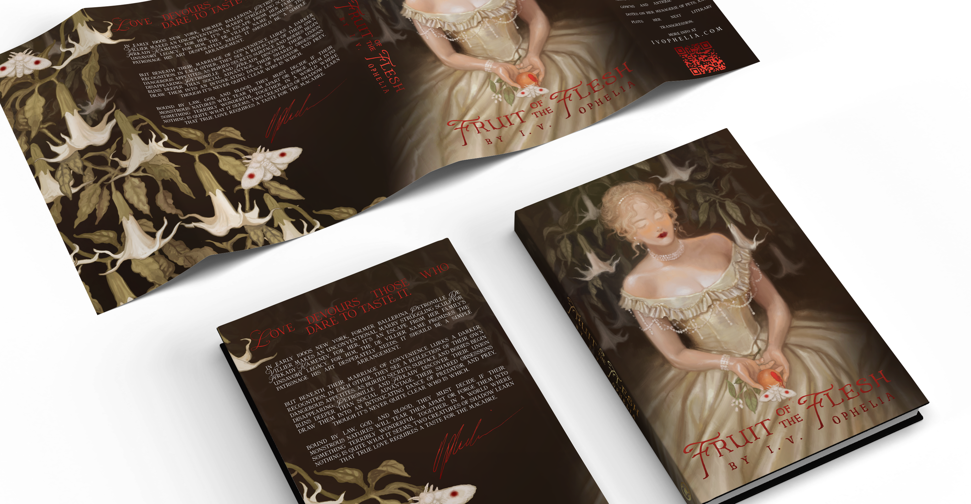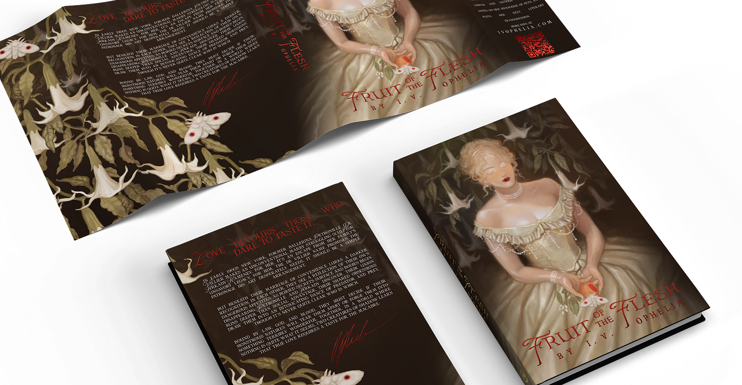 While I can’t print shop copies anymore… nobody said I can’t do dust jackets! These jackets fits the trade paperback of Fruit of the Flesh. Yep, fits right over the regular-degular trade edition! The art is by Harteus with beautiful foiled details.